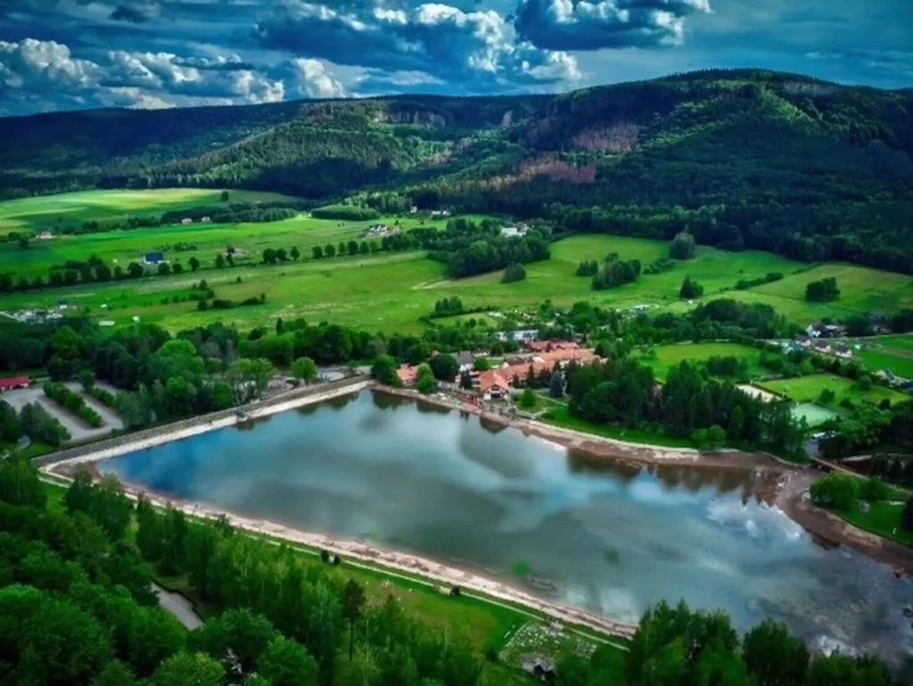 Przyjemne miejsce do odpoczynku nad wodą, z pięknym widokiem na Szczeliniec Wielki. Idealne na piknik, spacer lub spokojny czas na świeżym powietrzu.